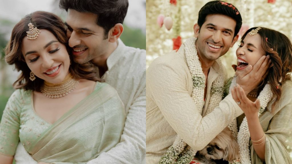 As soon as she posted, her film industry friends filled the comments with love. Santhosh Pratap wrote, “Wishing you both a happy and blessed life ahead,” while Vedhika commented, “Many congratulations, beautiful.”