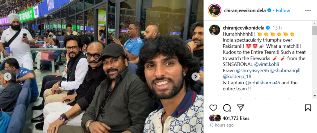 Chiranjeevi shared a string of photos and videos from yesterday’s India vs. Pakistan match on his Instagram handle. Take a look!