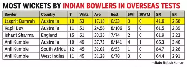 In the third Test in Brisbane, Bumrah, who has been India’s star performer in the series, took nine wickets to break Kapil Dev’s record of 51 wickets in Australia, reaching 53 wickets. He was also named Player of the Match in India’s 295-run victory in the first Test at Perth, where he dominated with both pace and skill. Currently, he has 21 wickets in the series at an astonishing average of 10.90, making him the most successful bowler in the series so far. Australian pacers Pat Cummins and Mitchell Starc follow with 14 wickets each.