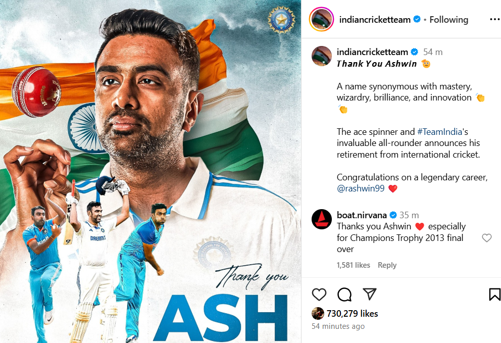 On Wednesday, December 18, Ashwin announced his retirement in a press conference. The BCCI honored him with a special post on social media.