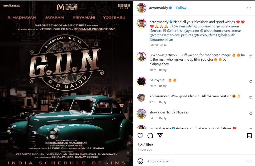 In his post, Maddy also announced that the shooting of the film in India has begun. He wrote in his caption, “Need all your blessings and good wishes.”