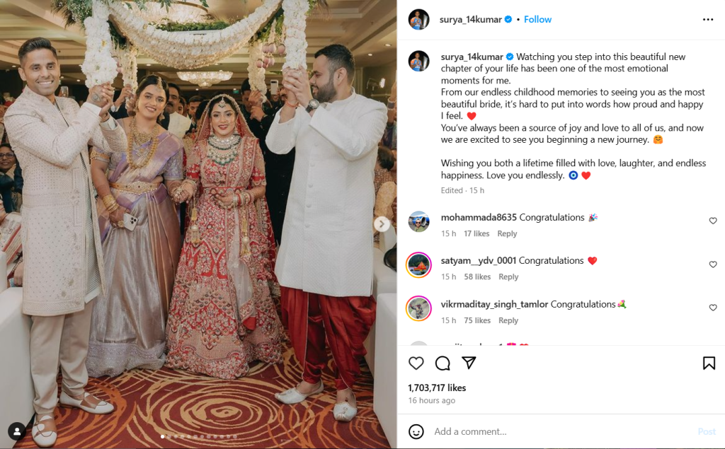 Suryakumar posted an emotional message along with the pictures on Instagram.