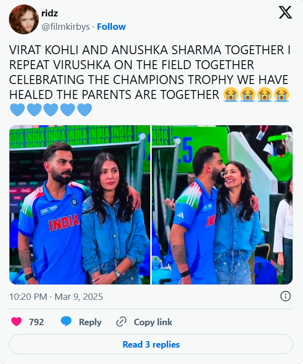 Captain Rohit Sharma’s wife Ritika and daughter, Virat Kohli’s wife Anushka, Ravindra Jadeja’s family, and Mohammed Shami’s family were all at the ground before the presentation ceremony started. Everyone’s mobile phones were busy capturing these memorable moments.